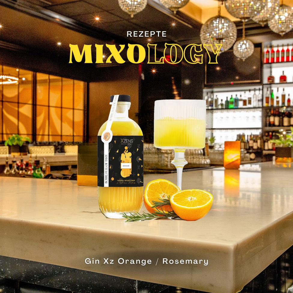 Eine handgemachte Infusion aus frischen Kräutern, erlesenen Gewürzen und BIO Zitrusschalen trifft auf frisch gepresste Fruchtsäfte. Entdecke unseren XZENS Premium Bar-Sirup zum einfachen mischen komplexer und mehrdimensionaler Cocktails, Longdrinks und Mocktails, sowie unvergesslicher Aperitifs und Sommerdrinks / Spritz!